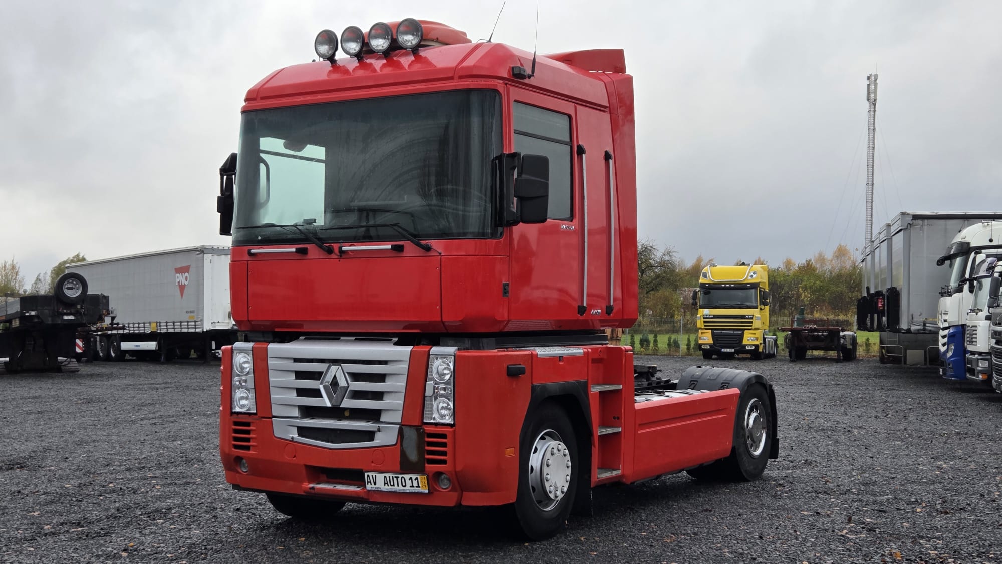 Немецкий трактор в отличном состоянии, 440 л.с. dxi euro3, с ретардером, автоматической коробкой передач, 2 спальных места, 2 топливных бака, холодильник, стереосистема CD-чейнджер, кондиционер с дополнительным автономным кондиционером на крыше, дополнительные фары, спойлеры на кабине и на шасси...